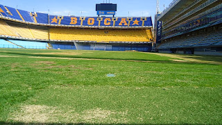 formato retangular. O estádio está situado no bairro La Boca, perto do famoso